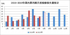 據(jù)統(tǒng)計(jì),2019年7月份國內(nèi)聚丙烯檢修損失量在20.12萬噸,環(huán)比(2019年6月份22.01萬噸)減少1.89萬噸,降幅在8.58%;...