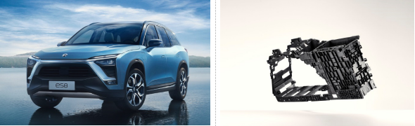 圖左:?車身流暢、色彩明快的新一代新能源汽車NIO ES8將亮相北歐化工和博祿以及諾瓦化學(xué)在2019 K展的聯(lián)合展臺。