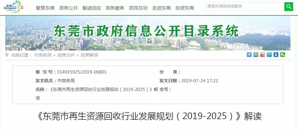 ????????7月24日,東莞市商務局對《東莞市再生資源回收行業發展規劃(2019-2025)》進行解讀,進一步規范再生資源回收行業發展