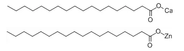 ????????硬脂酸鈣、硬脂酸鋅與硬脂酸的結構相似,多了帶電荷的鈣離子和鋅離子。如何理解帶電荷的離子,說白了所說的極性其實就是電荷的吸引力。鈣鋅離子的電荷大大增強了其極性,要知道在PVC常用的潤滑劑中硬脂酸鈣、鋅等的極性是最強的。這就賦予了其與PVC樹脂更強的親和力,從而減弱或消除了PVC 樹脂顆粒內部各層離子鍵的吸引力,促使PVC相互纏繞的鏈段易于擴散,形成的滑動層黏度高,摩擦生熱大,對機械的力的傳遞效率高,加速了物料升溫,引發樹脂過渡塑化。而鉛鹽自身沒有這種影響。
