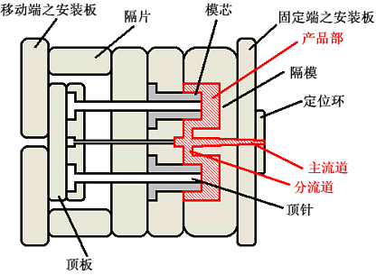 成型品是由熔融樹脂進入的主流道,引導熔融樹脂進入模腔的分流道及制品所構成的。