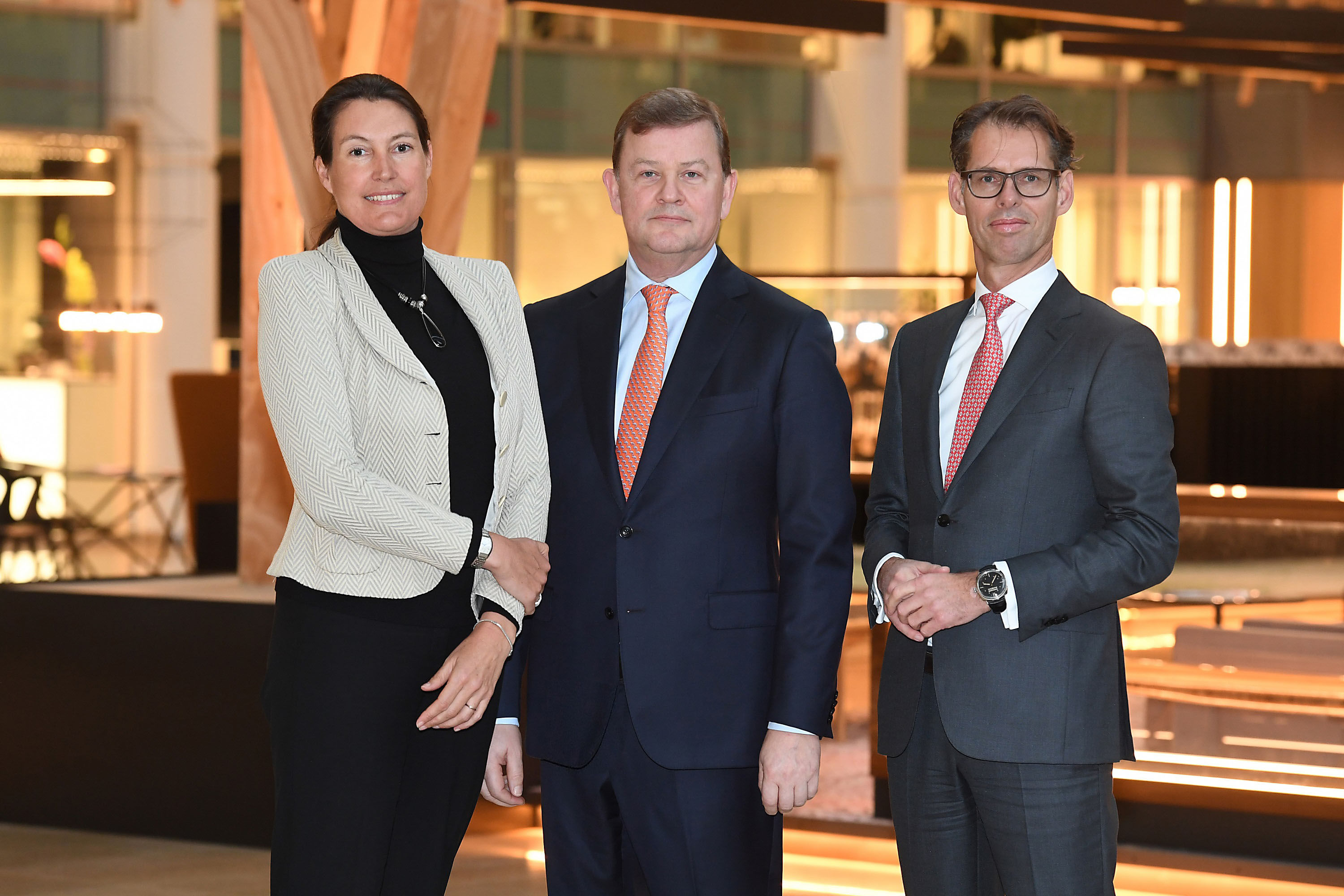 現任全球首席執行官謝白曼先生(Feike Sijbesma;中)與董事會成員馬潔嵐女士(Geraldine Matchett;左)和傅瑞德先生(Dimitri de Vreeze;右)
