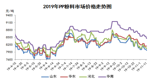????????首先,丙烯煉廠多剛需放量,基本面一直未有改觀,市場價格延續偏弱穩定,對粉料成本面支撐相對有限;其次期貨方面近來接連收跌,截至目前收盤價跌至7913元/噸,大大打擊和牽制業者操盤心態,抑制粉料現貨氛圍;最后就是需求面了,自進入10月中下旬以來,下游及中間商一直剛需小量補倉為主,導致粉料廠家按需走貨,再加上買漲不買跌心態制約下,詢盤意向一度陷入冷清,廠家周末庫存抬升,商家不得不繼續讓利積極排庫。
