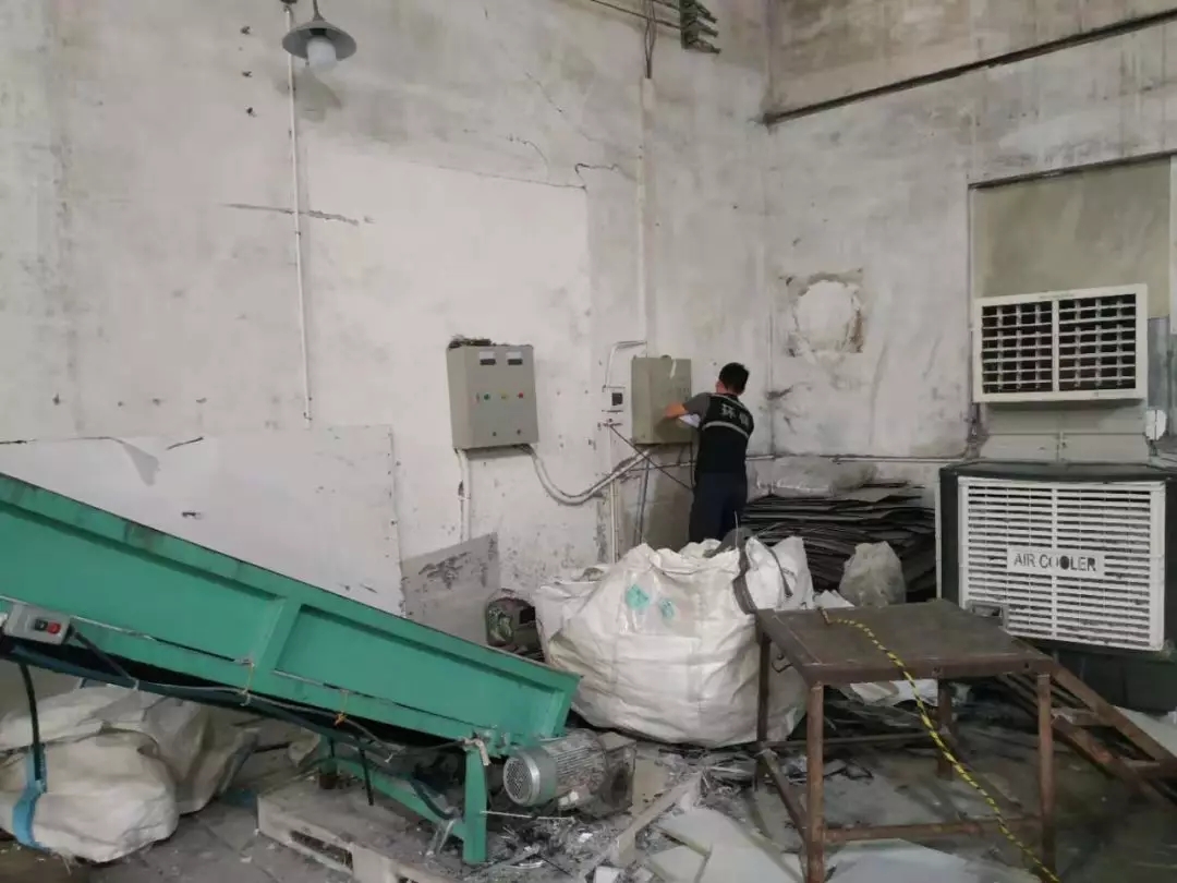 ????????經查,該廢舊塑料生產加工廠位于古朗工業區內,經營面積約2500平方米,檢查時該廠正在正常經營,有廢舊塑料原料一批和已加工的塑料成品一批,生產車間內有特種設備叉車一臺。