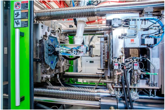 伊之密與合作伙伴Frimo提供的ReactPro方案,將注射成型與聚氨酯(PUR)包覆工藝結合在一起,更簡單、更模塊化、更靈活、更具成本效益。在Frimo總部舉行的聯合技術開放日上,第一套高度集成和自動化的ReactPro系統亮相,現場生產帶聚氨酯表面的發動機蓋,吸引了不少感興趣的專業觀眾。