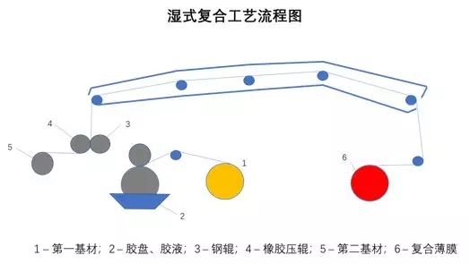 ????????使用濕式復(fù)合時(shí),兩種基材中至少有一種是多孔性材料(如紙或紙板),以便膠粘劑中所含的稀釋劑在干燥時(shí)揮發(fā)出去。因此濕法復(fù)合廣泛用于紙/纖維、紙/紙、紙/紙板、紙/鋁箔等材料的復(fù)合。