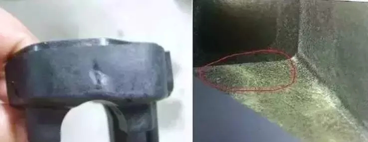????????但在玻纖增強尼龍注射成型過程中,“浮纖”現(xiàn)象經(jīng)常出現(xiàn)。浮纖現(xiàn)象是玻纖外露造成的。白色的玻纖在塑料熔體充模流動過程中浮露于外表,待冷凝成型后便在塑料件表面形成放射狀的白色痕跡,當(dāng)塑料件為黑色時會因色澤的差異加大而更加明顯。