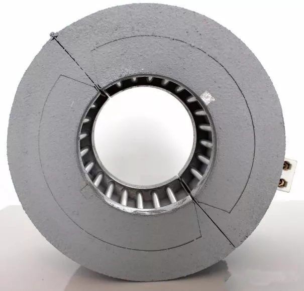 ????????傳統(tǒng)加熱圈通過接觸傳導方式把熱量傳遞到機筒,其中有一半的熱量散發(fā)到了空氣中;保溫型的紅外線加熱圈,發(fā)熱效率高,導向性的輻射可將熱量直接轉(zhuǎn)換成機筒上的溫度,避免熱量的散發(fā)。其外觀結(jié)構(gòu)如圖5、圖6、圖7。