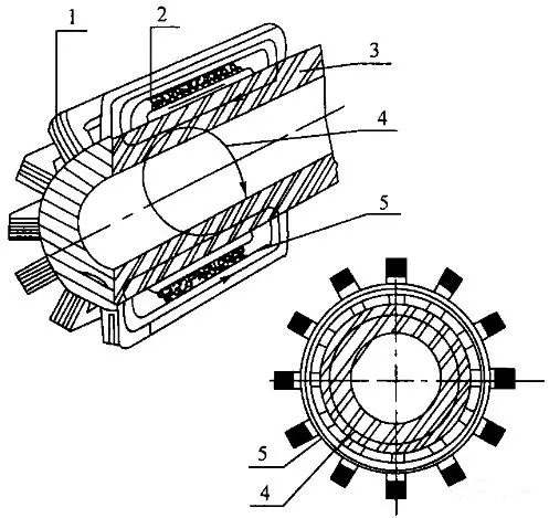 1—硅鋼片 2—冷卻劑(水或空氣) 3—機筒