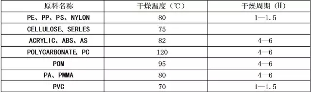 ????????參考“塑料原料干燥溫度參考表”結合實際經驗,酌情調節電子溫控儀,使雙金屬溫度計反應的溫度與實際溫度相符。